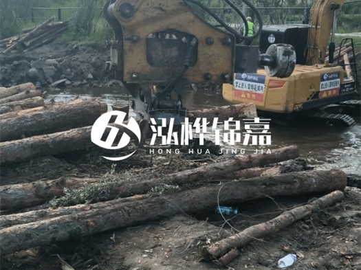 江蘇某河道護(hù)岸工程,使用 5 米直徑 10 的松木樁,部分地段地下 2 米處有沙礫層,施工隊(duì)采用機(jī)械引孔 + 液壓打樁組合: