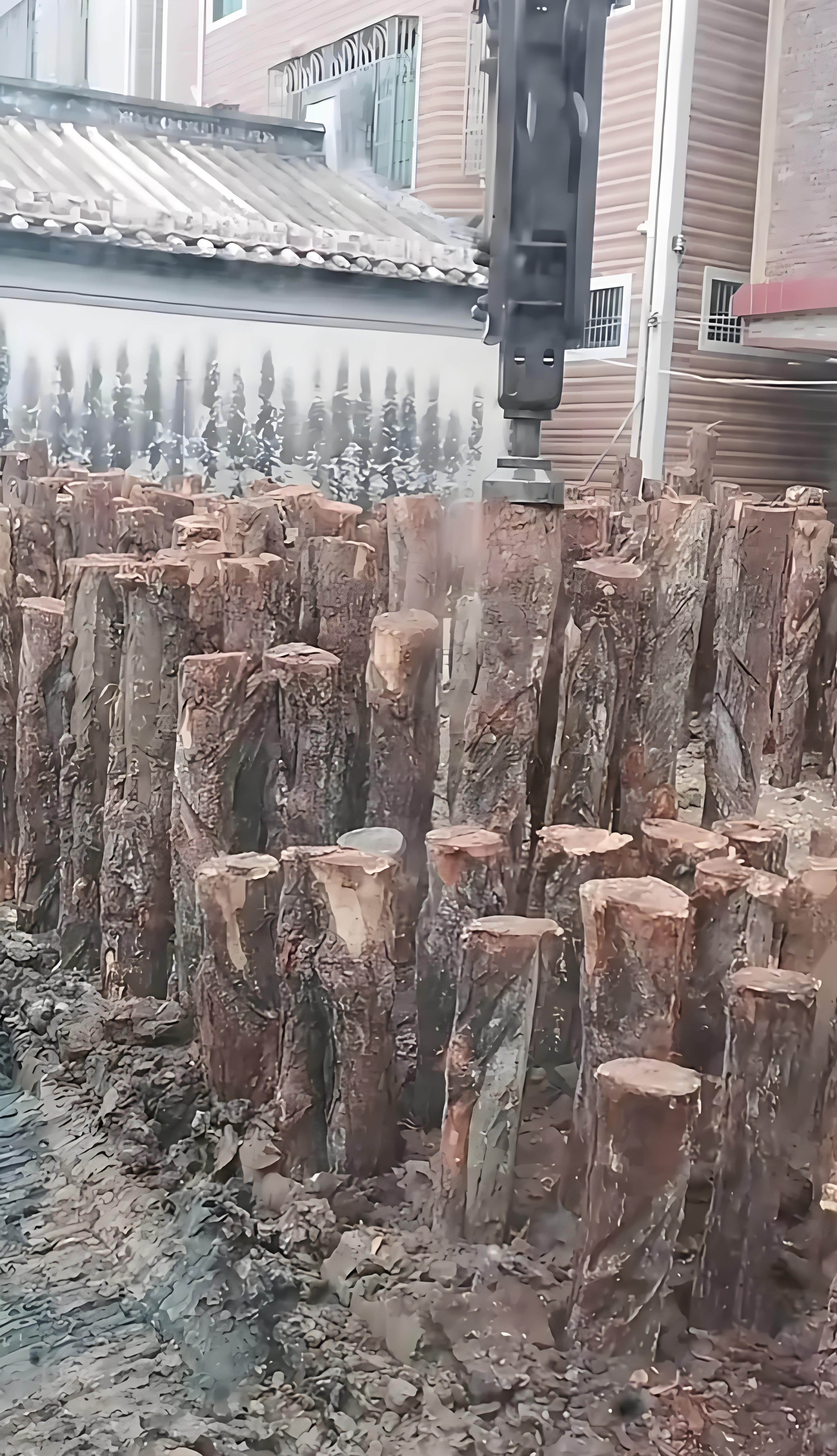 農(nóng)村建房工期通常比較緊張,松木樁施工更靈活:不用復(fù)雜設(shè)備,小型打樁機(jī)甚至人工輔助就能打,100 根樁 1-2 天就能完成;而且松木樁重量輕,運(yùn)輸?shù)睫r(nóng)村小路也方便,不會(huì)像水泥樁那樣需要大型卡車。