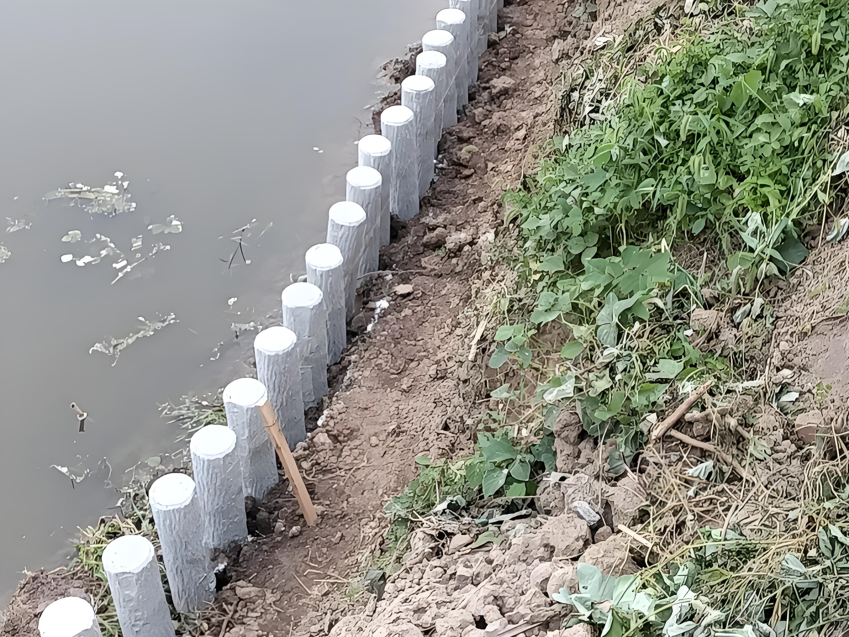 第二個是 “施工要專業(yè),確保樁體牢固”。水泥仿木樁看著簡單,但施工不到位,防護效果會大打折扣。比如打樁時要是垂直度偏差大,樁體受力不均,時間長了容易傾斜;或者樁底沒固定好,會被水流沖刷得松動。