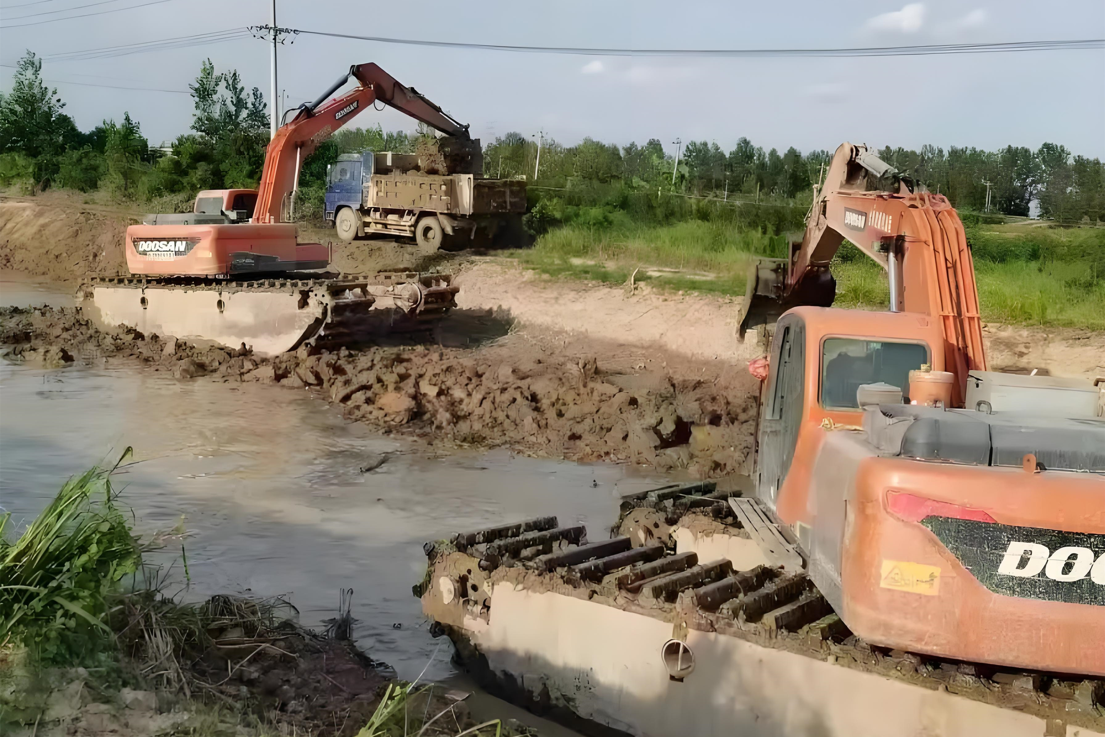 3-5 月的佛山沼澤地,表面看起來土地開始解凍(其實(shí)佛山冬季不凍,但春季雨水多),但地下 30 公分以下全是爛泥。挖機(jī)履帶容易打滑,甚至陷到托鏈輪里。而且春季是沼澤地動(dòng)植物繁殖期,清淤可能破壞生態(tài),環(huán)保審批也更嚴(yán)。除非是緊急工程,否則不建議春季動(dòng)工。夏季:高溫 + 暴雨的 “雙重考驗(yàn)”