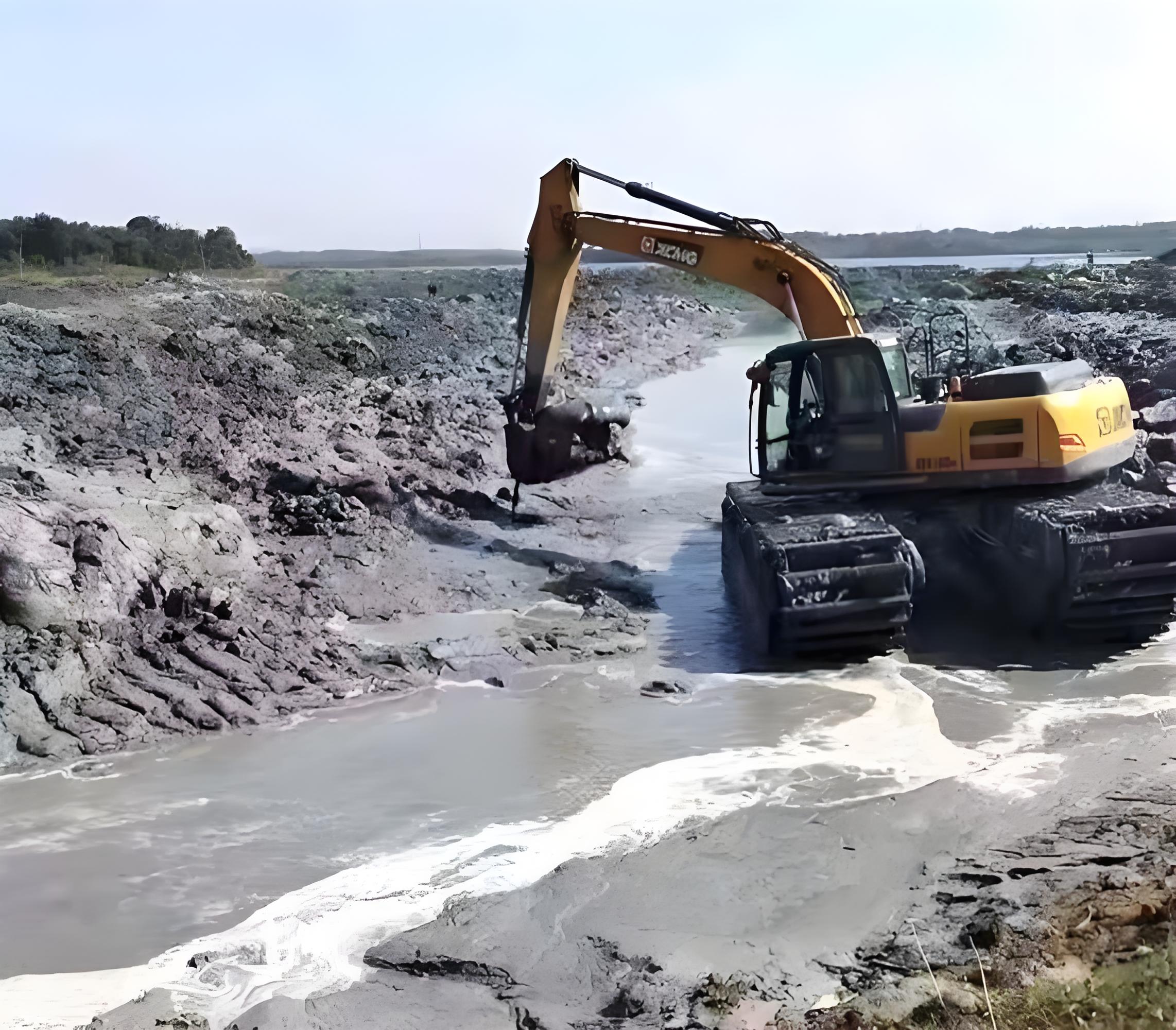 - 挖機(jī)的斗容和附屬裝置:自貢常用的 150 型水上挖機(jī),標(biāo)配挖斗容量在 0.6-0.8 立方米,處理一般水草淤泥沒(méi)問(wèn)題;但如果水草特別多,換成帶鋸齒的挖斗或加裝破碎裝置,能把水草切斷,避免纏繞。另外,有些施工隊(duì)會(huì)在挖斗上焊上鋼筋網(wǎng)格,既能留住淤泥,又能讓多余的水分漏掉,間接提高處理效率。