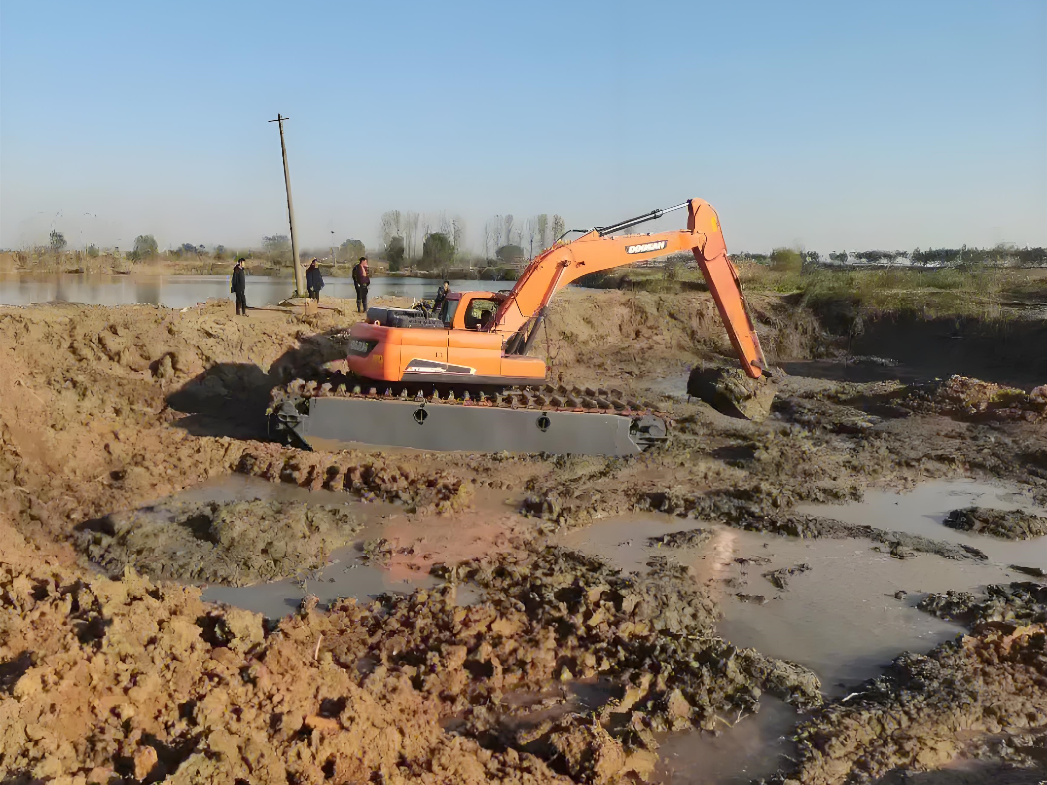 選對時段,施工效率能提高 30% 以上。比如在春秋季,水上挖機每天能作業(yè) 8-10 小時,而在冬季可能只能作業(yè) 5-6 小時。而且春秋季淤泥的流動性適中,更容易被挖起和運輸,而夏季淤泥含水量過高,運輸過程中容易泄漏,冬季則因結(jié)冰難以處理。