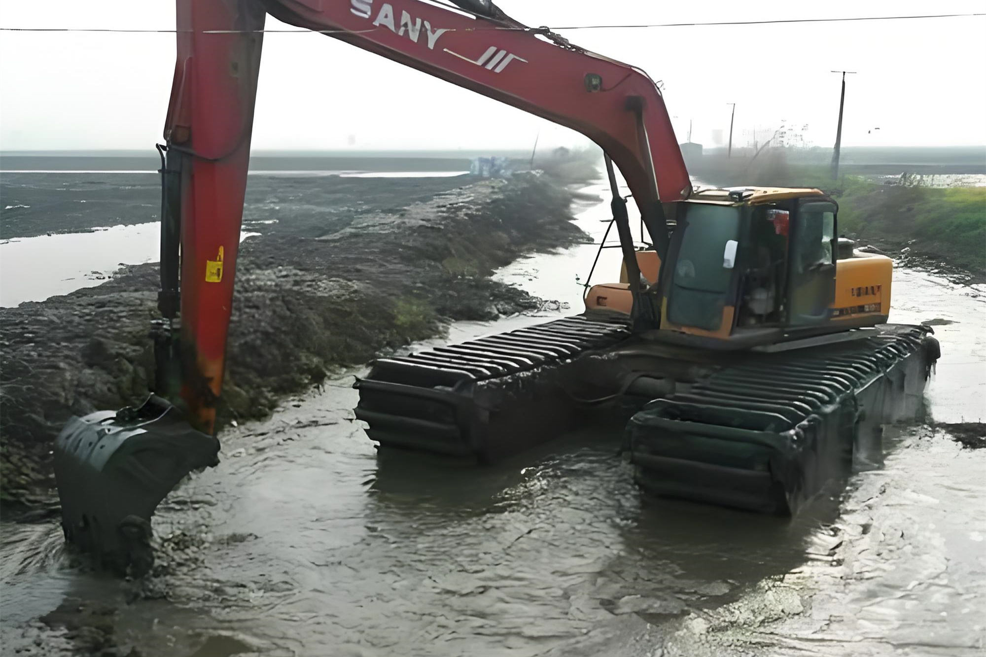 而小型水上挖機(jī)剛好能解決這個(gè)問題:機(jī)身寬度 3-4 米,剛好能在 5 米寬的河道里掉頭;采用 “淺水域浮臺(tái) + 履帶” 設(shè)計(jì),水深 0.3 米就能浮起作業(yè),就算河道局部有淺灘(水深 0.2 米),也能通過履帶緩慢移動(dòng),不會(huì)陷進(jìn)淤泥或壓塌河坡。比如玉門清泉鄉(xiāng)某 5 米寬的灌溉渠,用小型水上挖機(jī)清淤時(shí),一天能推進(jìn) 150-200 米,全程沒出現(xiàn)卡殼、壓坡的情況,比人工清淤效率高 5 倍以上。
